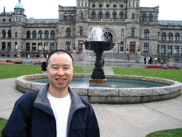 Washington Canada Trip Canada PhotoMy first visit outside the United States was Canada in Aug 2005. My friend and I stayed in British Columbia for two days. The first day was in Victoria. The second day was in Vancouver. It rained on both days. The picture is me in front of the Legislative Buildings in Victoria.  |